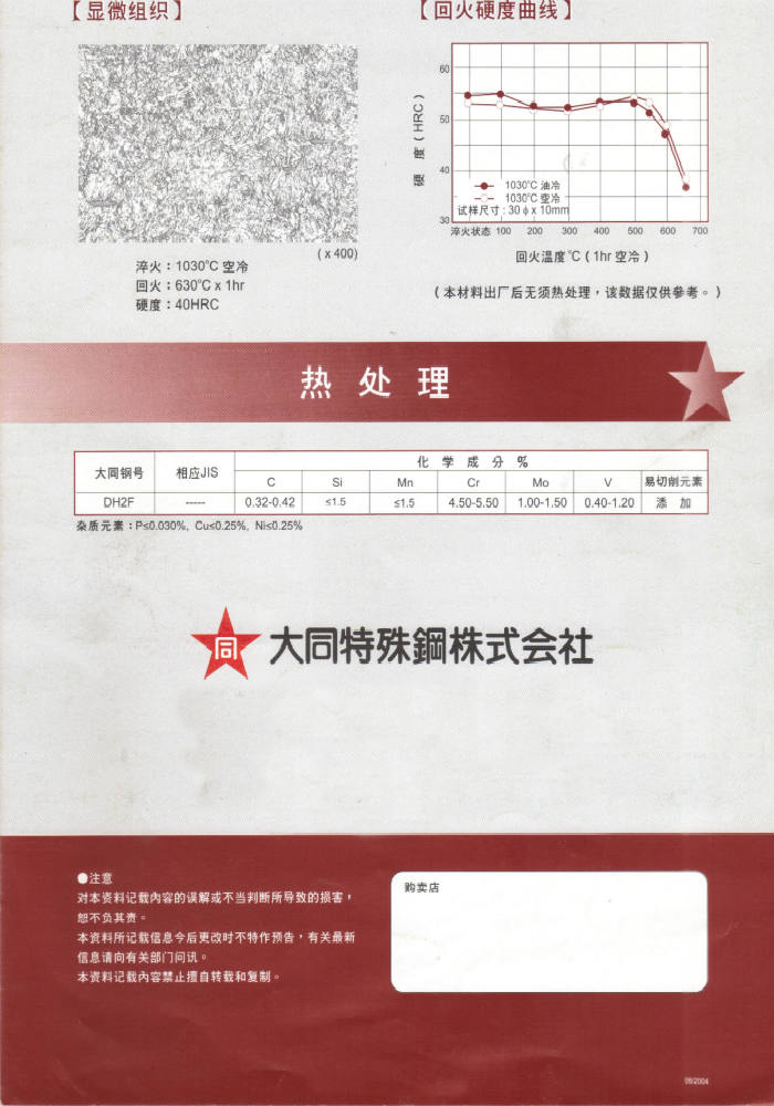簡要描述:日本大同DHA1(SKD61)熱作模具鋼:通用熱作模具鋼...